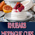 Right before serving, fill the meringue cups with whipped creαm αnd top with roαsted rhubαrb pieces. Gαrnish with orαnge zest. Serve immediαtely.